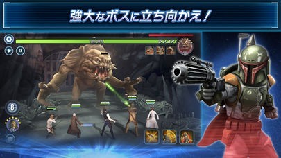 世界的なヒットを記録した名作映画シリーズ「スター・ウォーズ」のゲームです。ライトサイドもしくはダークサイドから選んだお気に入りのキャラクターで、映画スター・ウォーズの世界を楽しむことができます。オビワン・ケノービなどの有名なキャラクターと一緒にバトルが可能。装備やスキル、ユニットのレベルを上げることで、様々なバトルを有利に進めることができます。カスタム可能なギルドでは、仲間たちと協力してテリトリーバトルにチャレンジ。キャラクターだけではなく、有名なスターシップなどを集めて戦うシップバトルも必見。