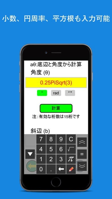 角度の計算は度数法、ラジアンおよび度分秒への変換などにも対応しています。さらに有効桁数も15桁に対応しているため、理系の学生や工学系の仕事の方にもオススメです。