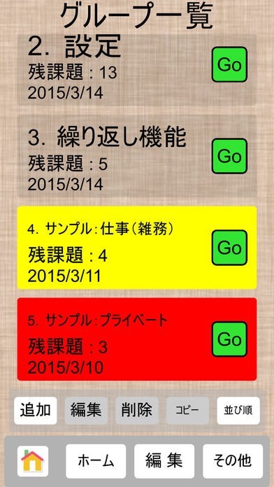 ・繰り返し課題は起動時、または画面更新時に条件に合った課題が自動的に作成されます