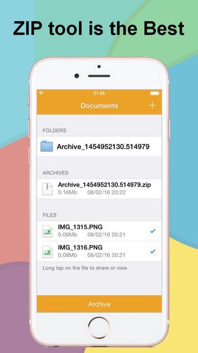 メールやその他のスマホアプリからダウンロードしたzipファイルはこのアプリで簡単に解凍することができます。また、それらのファイル・フォルダはこのアプリ内で閲覧することも可能です。
