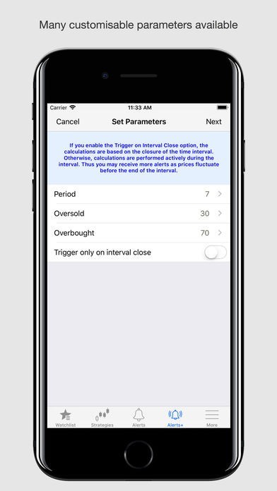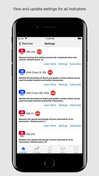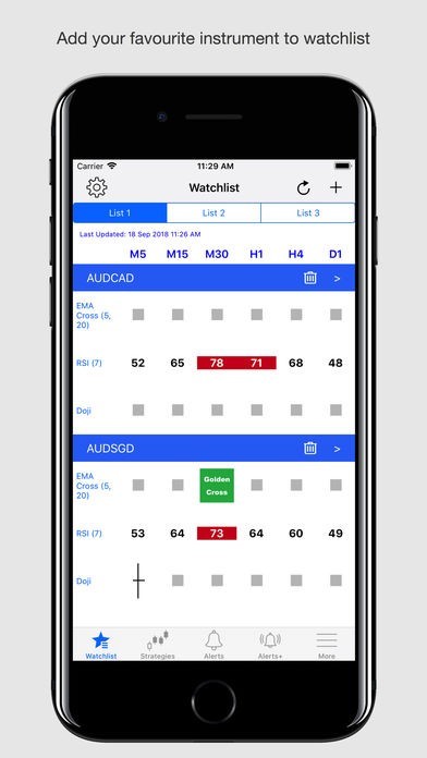 お気に入りの銘柄をウォッチリストで監視しておくことができます。ひとつの金融商品に複数のテクニカル分析をセットしておくこともできるので投資分析に役立ちます。状態遷移について赤や緑色など視覚的に確認することができるようになっています。