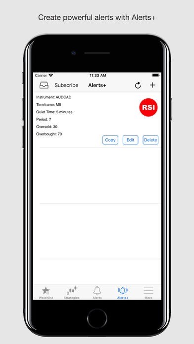たとえばドル円という通貨ペアに対して、5分、15分、30分、1時間、4時間、日足でRSIのテクニカル指標のパラメータを調整することができます。多様な手法を検証するのに便利な仕様となっています。