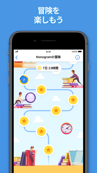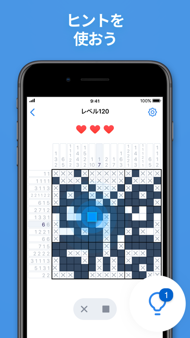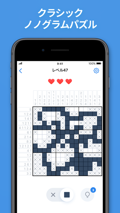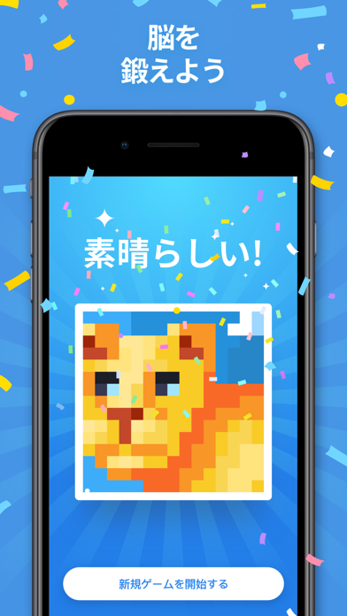 ルールに従って画面を塗りつぶしていく論理パズルです。パズルを解くと少しずつ隠された絵が現れ、ちょっとした達成感があります。1人で黙々と遊べるシンプルなゲームです。