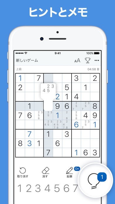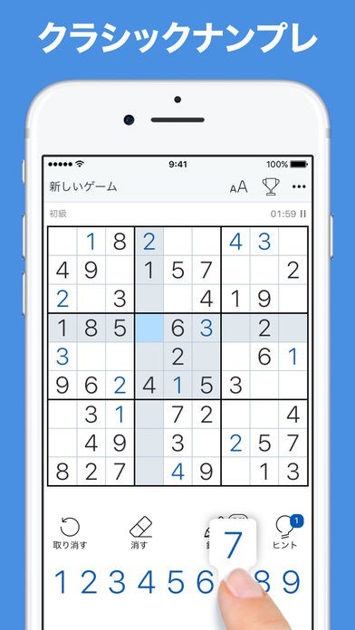 クラシックな数独パズルゲームをスマートフォンでいつでもプレイすることができる!