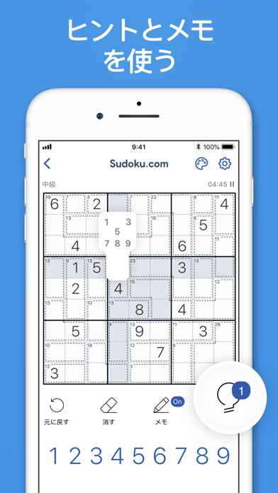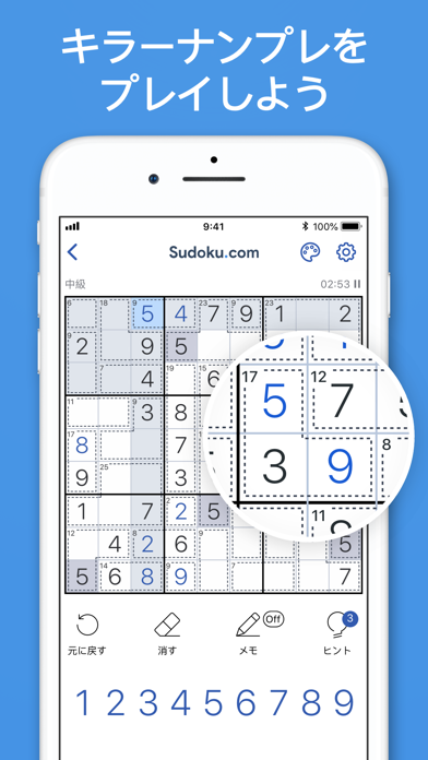 App Storeより引用最高にハマるキラーナンプレを体験しよう!進化したゲームプレイで、たくさんのパズルを解き、脳トレを行い、楽しみましょう!