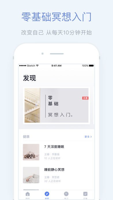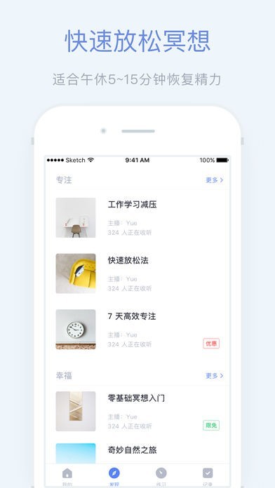 繁忙生活中给你增加能量的冥想小助手。每天一段轻松冥想原创音频,你可以: