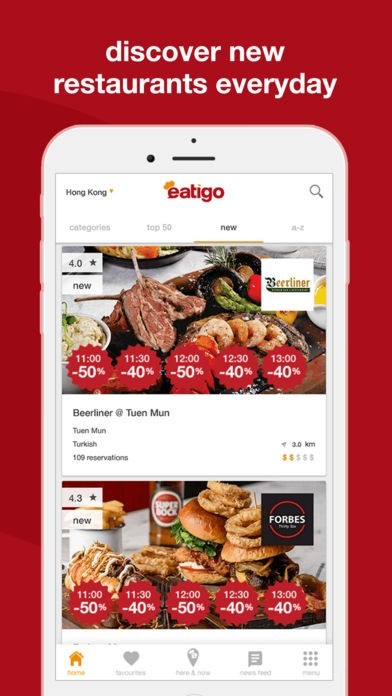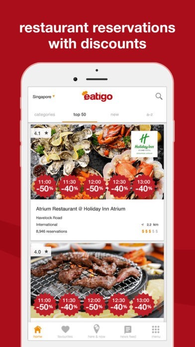 「eatigo」は、海外旅行中のレストラン選びにも大活躍してくれます。シンガポールや香港、フィリピンなどアジアの国々を中心に選び放題です。今すぐ利用できるおいしいレストランが見つかります。