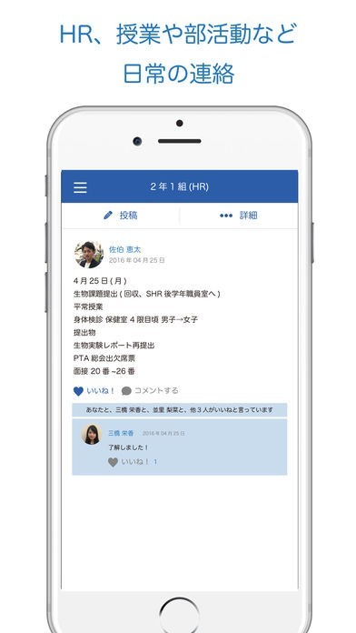 ・HRや授業での日常の連絡
