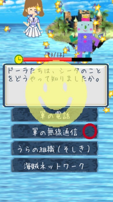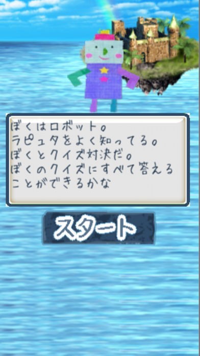 そのラピュタのキャラやストーリーなどのクイズを、このアプリのキャラであるロボットが出題します。