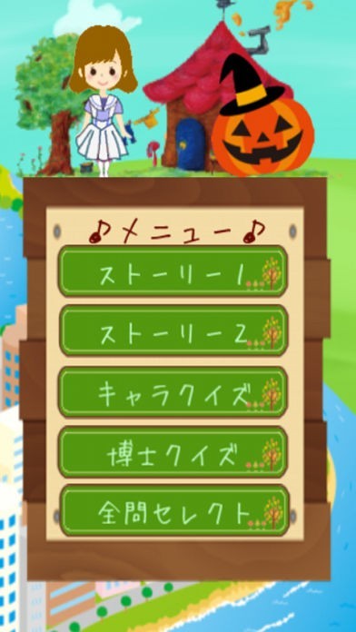 そのキャラやストーリーなどのクイズを、このアプリのキャラであるかぼちゃおばけのジャックが出題します。