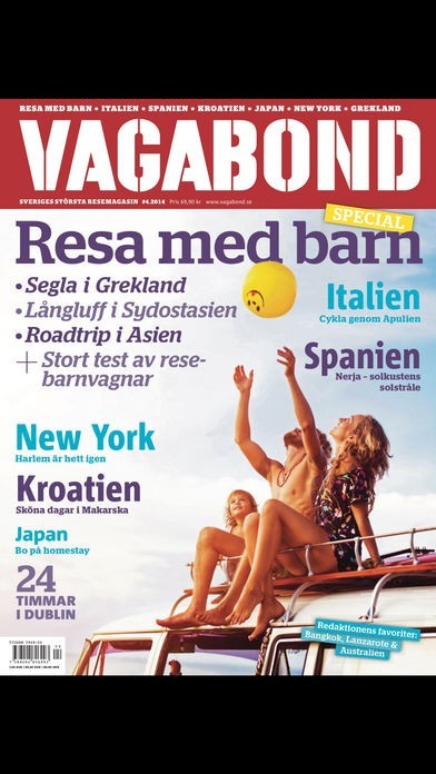 App Storeより引用Vagabond är tidningen för dig som älskar att resa, vill ha inspiration till ditt nästa resmål eller bara vill drömma dig bort bland världens vackra platser. Vagabond guidar dig bland kända och okända resmål och ger dig de ovärderliga tipsen som gör att du får ut maximalt ur din resa. Tidningen kommer ut med 12 nummer per år.