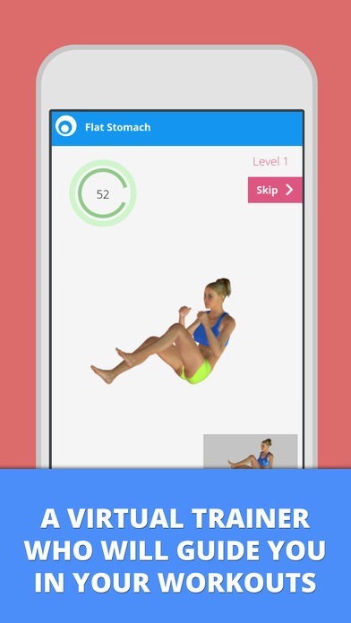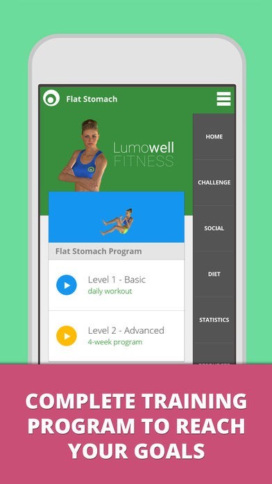The Flat Stomach app offers a complete program for women and man to reduce belly fat. You can do the ab workouts at home, no equipment is necessary.