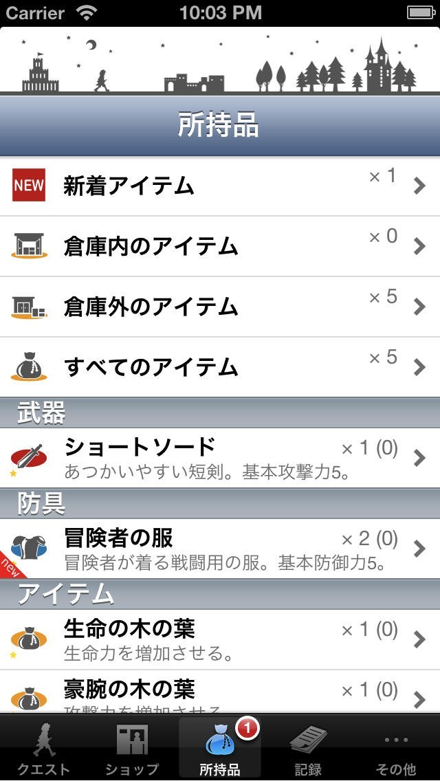 所持品は、の「売却・倉庫」ボタンを押せば売ったり倉庫にしまったりすることができます