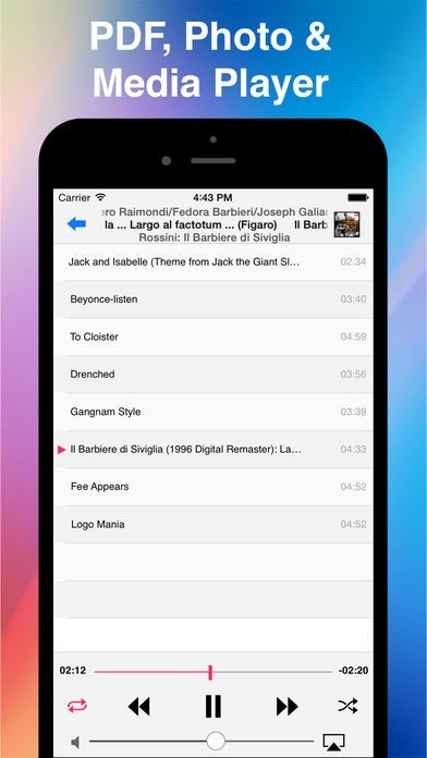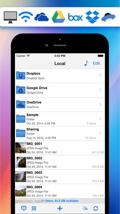 DropBox、GoogleDriveなどのストレージサービスと連携して、全ての音楽ファイルを再生する音楽プレーヤーです。リピートやシャッフル、バックグラウンド再生に対応しています。