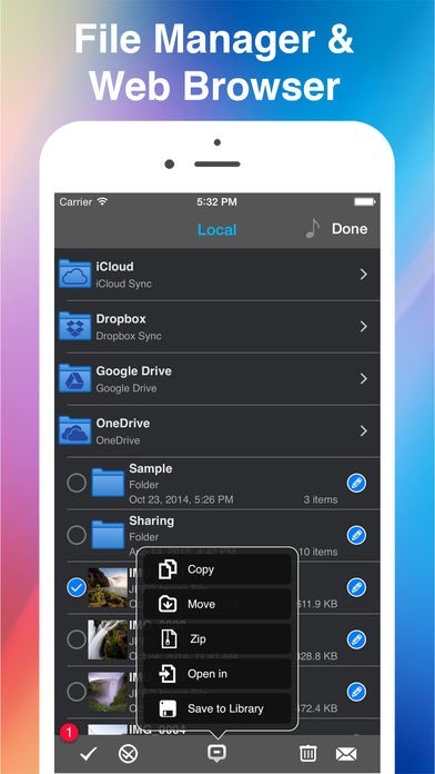 ダウンロードマネージャ機能が搭載されているので、アプリに内蔵されているWebブラウザを使用してインターネットに上げられているファイルをダウンロードして保存しておくことができます。