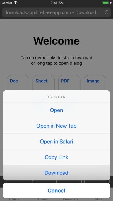 デバイスにドキュメントをダウンロードして開く