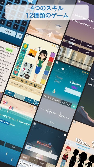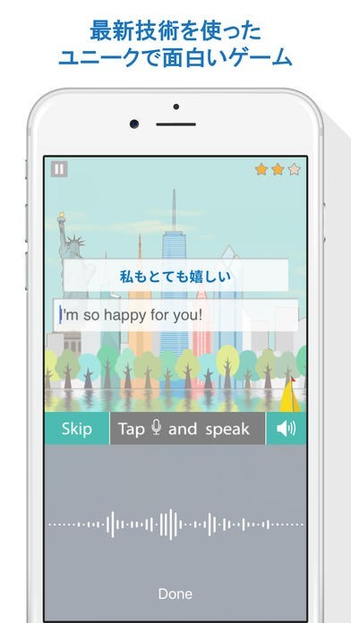 非常に正確なiOSの音声認識システムを利用したeIQのゲームが、あなたのスピーキングの発音を判定します。