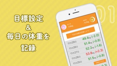 体重入力の履歴も見れるので、サボらずダイエットを続けられます。