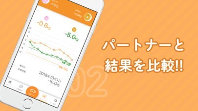 体重を記録し、パートナーと自分の成果がグラフで一目瞭然!