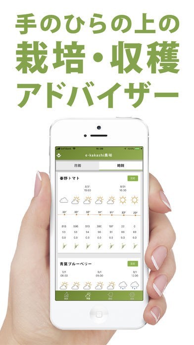 農業用高精度気象予報をベースに予測を行う栽培ナビゲーションアプリとして、農作業の判断をサポートしてくれます。風向きや日射などの詳細予測も付属した気象予測機能に加え、簡易な収穫日予測も行えます。