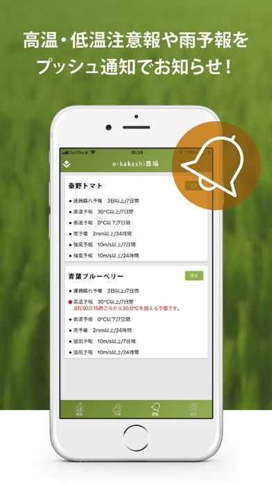 アラート通知機能を搭載しています。72時間の連続晴天に加えて、降水予測、高温予測、低音予測などを搭載。アラート通知が素早く天気を教えてくれるため、状況に合わせた作業を行うことができます。