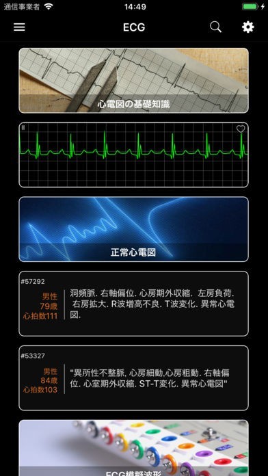 心電図が表示出来るだけでなく、PDF形式でエクスポートする事が可能なので、効率的に勉強を進めたい時に重宝します。特定の心電図が簡単に検索出来るのもメリットですね。