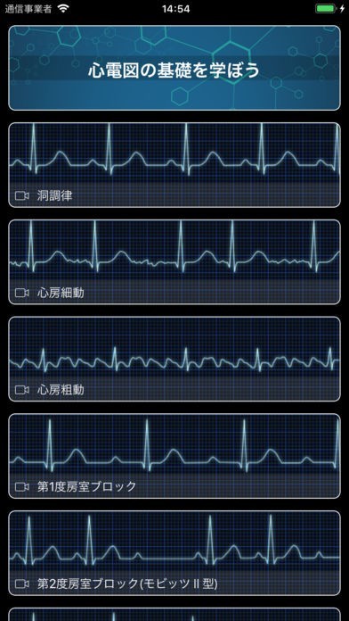 心電図の基礎知識がリスト形式で確認出来るスマホアプリ