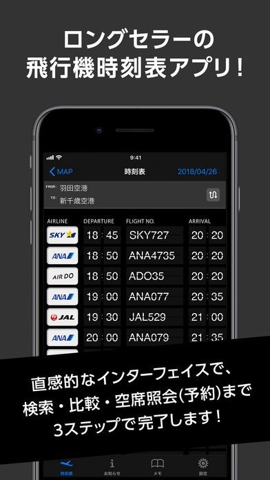 「駅探 飛行機時刻表 国内線」スペック・仕様