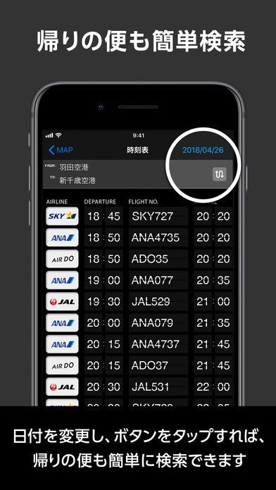 使うエアポートを正式に選んでいなくても、データを瞬時に調査出来る検索アプリです。