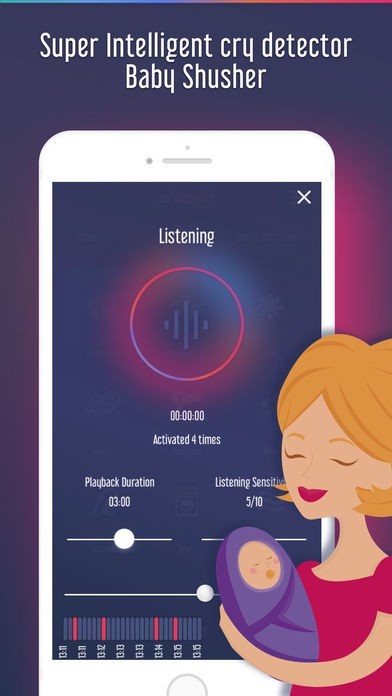 With the Sound Detection Feature whenever your baby cries or makes a sound , Shush will play your preselected sound to put your baby to sleep again.