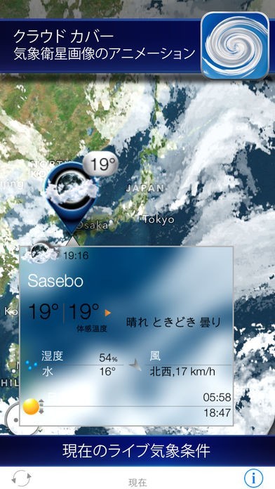 台風と共に雲の動きを見ることが出来るので雲が集まり台風の勢力が強くなって行くのが分かって勉強にもなります。現地の天気などを見ることが出来るのでとても便利だと思います。