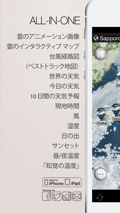 「Typhoon - 台風情報·嵐経路図·サイクロン衛星レーダー」スペック・仕様
