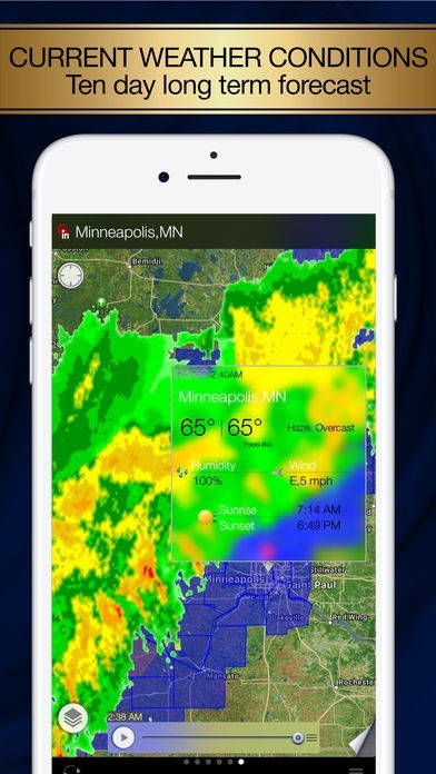 Radar MAX shows animated weather, so you can tell if rain is headed toward or away from you, and how fast.