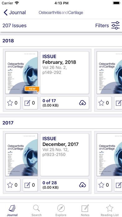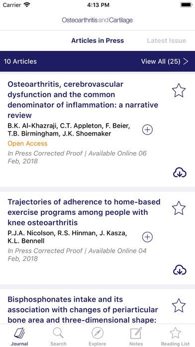 Journal subscribers: Log in with the same username and password obtained on the Osteoarthritis and Cartilage website that grants you access to the full journal content. These credentials will allow full access to all content on the app.