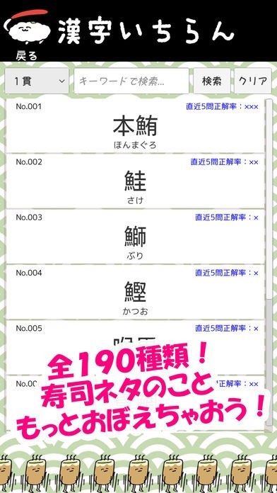 間違ってもOK。たくさんクイズを答えてお寿司の漢字をおぼえよう!