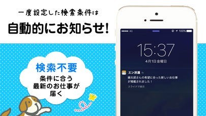 条件に合う求人が出ると、プッシュ通知でお知らせ