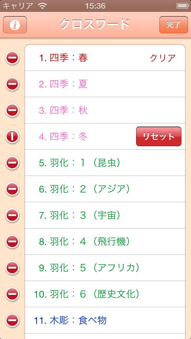 このアプリケーションは、8×8マスの中に言葉を当てはめていくクロスワードパズルです。この説明だけ聞くとなんの変哲もないクロスワードパズルに感じるかもしれませんね。しかし、使用されているキーワードは日本の美しさを感じさせる 言葉ばかりです。そのため、通好みのクロスワードパズルになっています。したがって、その難易度はなかなかのもの!クリアするのは至難の技かもしれません。しかし、遊びながら日本語を学べるという意味では、チャレンジする価値があるのではないでしょうか?パズルをクリアするとテーマに合わせた画像をゲットできるのも面白い要素となっています。