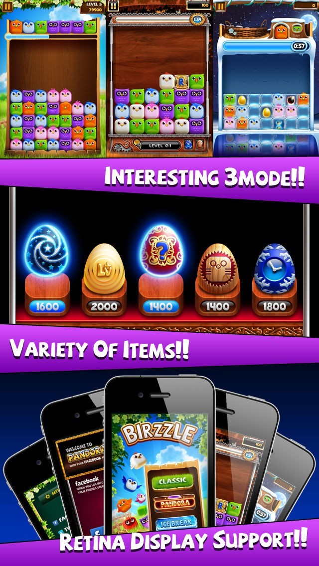パズル上に配置されている鳥を指で動かしてコンボを決めていき、得点を獲得していくという内容になっており、爽快感を感じることもできるので、気分をリフレッシュできます。