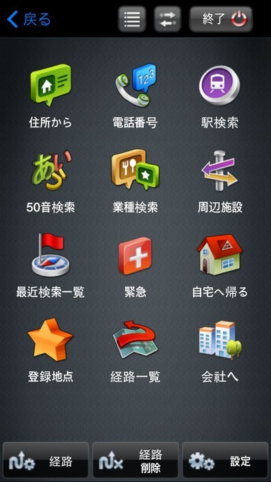 検索機能や経路オプションが豊富なので、住所や電話番号などわかっている情報から検索したり、迂回や条件を指定して、ナビゲーションすることができるので、思い通りに目的地までたどり着くことができます。
