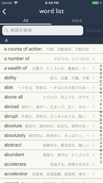 ・全収録単語を英語・日本語の両方で検索確認できる辞書を搭載