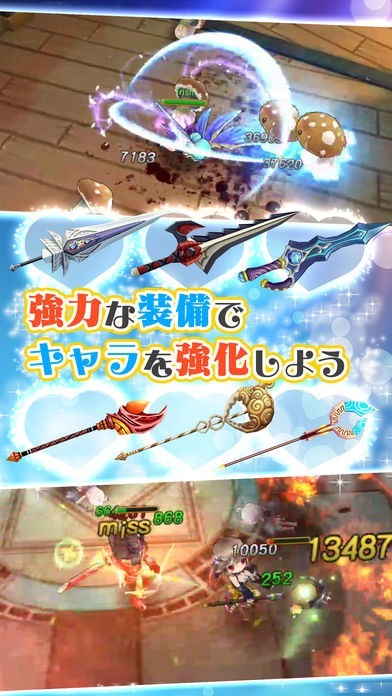 剣や杖など多彩な武器が登場し、お気に入りの武器をキャラクターに装備できるのも嬉しいポイントです。画面を動き回る可愛いチビキャラ達を飾り、友達と自慢し合うこともできます。最大4人までの同時プレイが行えるため、友達同士で装備や衣装を揃えたり、とっておきの武器を手に入れて見せたりと、放課後や休憩時間に皆でワイワイ盛り上がりながら遊ぶことができます。
