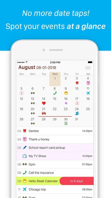2. Icons will make it easier for you to understand your schedule at a glance. Other apps give you either grey dots or teeny tiny text that clutters your calendar days.