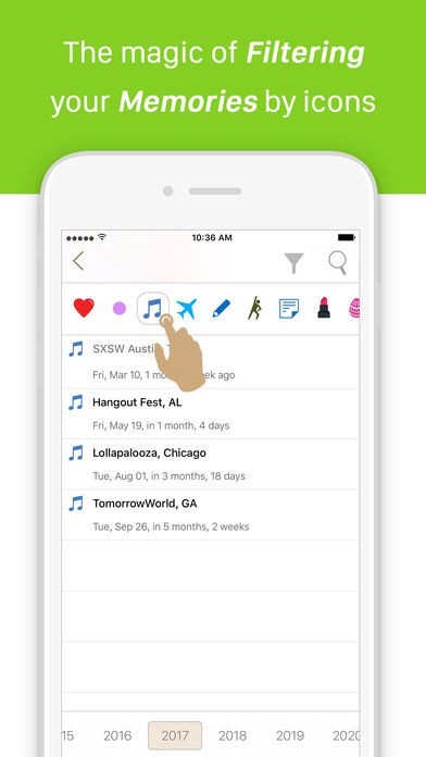 4. You can find events of a similar nature (Trips, family gathering, doctors...etc. ) by filtering them using icons. Compare that with using text to search-where you have to remember exactly what text was used!