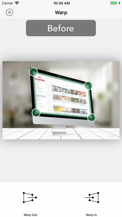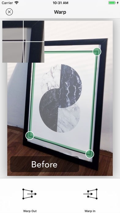 - 写真の中の歪曲された領域を4つのコントロールポイントを利用して選択します。