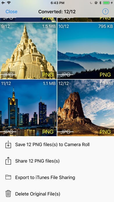 必要に応じてファイル形式の変換と一緒に画像のサイズを変更することもできます。形式変換やサイズ変更された画像ファイルはまとめてカメラロール内に自動で保存されます。