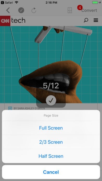 - 理想的なキャプチャのためにページサイズ(全体、2/3、半分)を選択します。