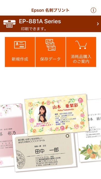 App Storeより引用『名刺プリント』は、スマートフォン・タブレット端末から簡単に写真付き名刺を作成して、エプソンプリンターで印刷できるアプリケーションです。