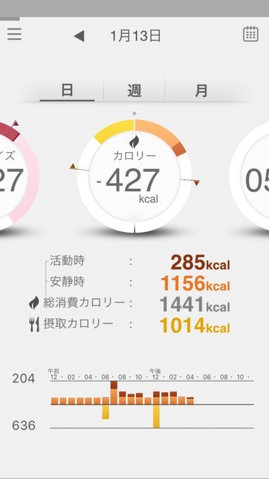 測定した歩数や脈拍から消費カロリーも算出されます。また、食事記録機能により食べた食事内容から摂取カロリーを割り出して記録することもできるため、健康管理だけでなくダイエットにも役立ちます。
