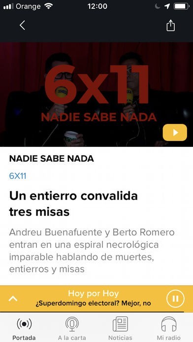 • La aplicación de tu emisora de la Cadena SER. La primera vez que abras la aplicación te mostraremos tu emisora más cercana de la SER para que tengas a tu alcance todas las noticias de tu ciudad y escuches los programas locales a la carta.