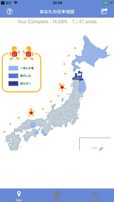 日本を色とりどりにして、行ったことのないエリアにもいつか色をつけましょう!